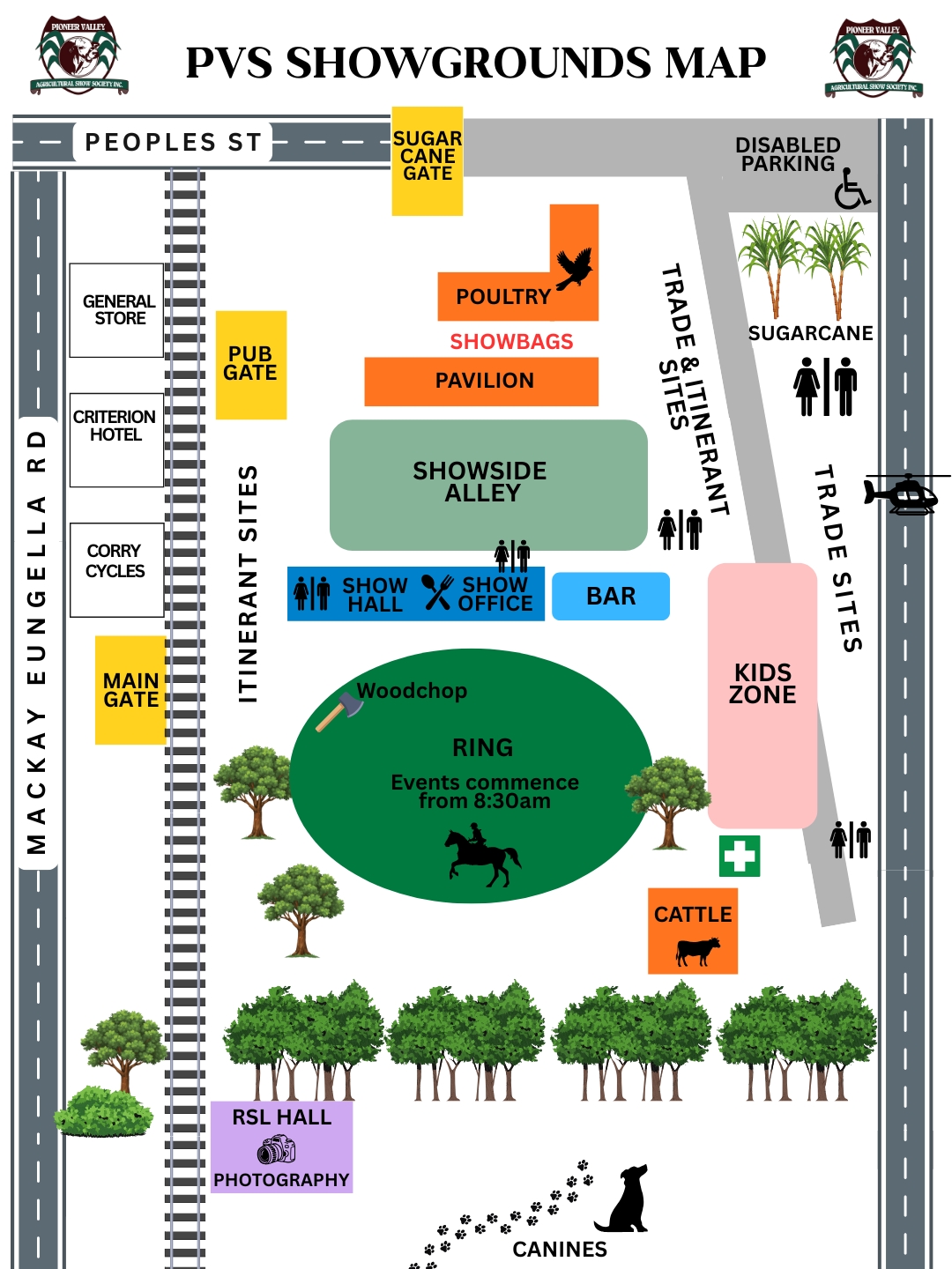 Disabled Parking is available inside the Sugar Cane Gate in People’s Street at the far end of the Showgrounds. Please proceed to purchase your tickets at the Sugar Cane Gate prior to proceeding to the Disabled Parking Bays located along the Pioneer River nearest the Sugar Cane.