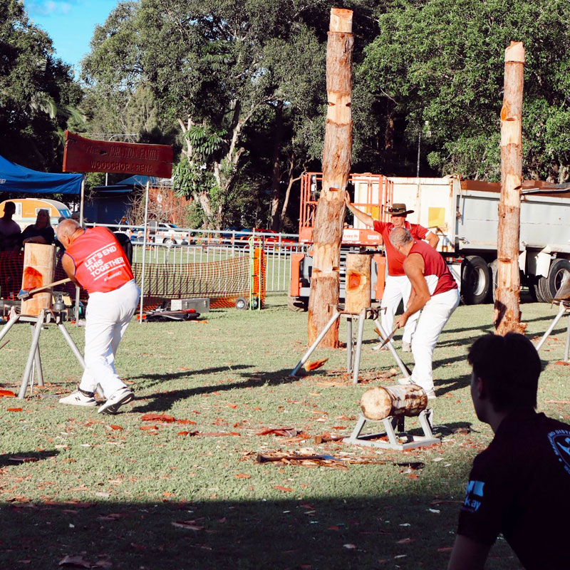 The Woodchop Competition at the Pioneer Valley Show is an action-packed crowd favourite, showcasing the strength, precision, and skill of competitive axemen and axewomen. Competitors go head-to-head in a series of thrilling events, from underhand and standing block chops to fast-paced sawing races. Each event highlights both technique and raw power, creating an exciting atmosphere for spectators. It’s a must-see feature of the show that celebrates both tradition and athleticism.